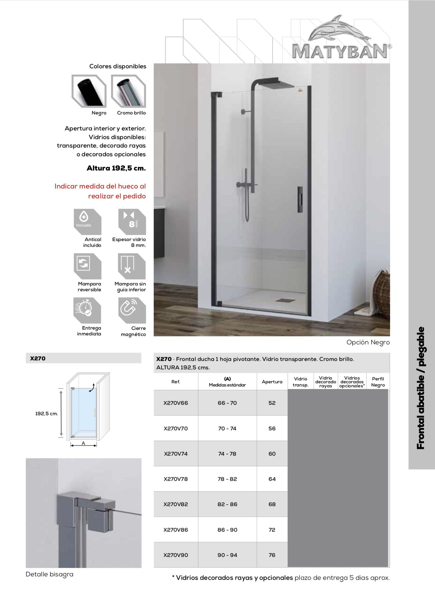 Como fabricante de mamparas de baño, en MATYBAN disponemos de una gran variedad modelos estándar y personalizados ya que nos adaptamos a la forma y dimensiones de la ducha o la bañera, aportando estilo y elegancia con nuestros innovadores diseños.
